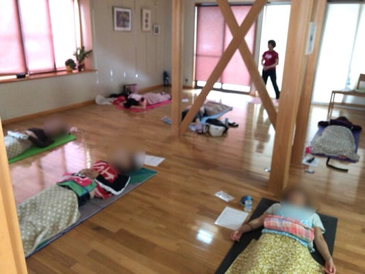 今回体操のテーマは骨盤修正!!沖ヨガの創設者沖正弘先生は、道場で寝泊まりする受講生の寝相を見て、修正体操を考えたと言われているそうですが、皆さんの骨盤の状態はいかがでしょうか?!制服のスカートがクルクル回る方や、うつぶせになると恥骨が痛いなど、知らず知らずのうちに歪んでいる骨盤です。今回は、2人組でチェックしながら、修正前と修正後と、どのような変化が起きるか?丁寧にチェックしました。最近、猫背、反り腰の方も多いのですが…その反り腰の原因が食べ物と関係があるというお話しから、皆さん驚きながらも納得されているようでした。骨盤の歪みは分かっているけど、どうしたら良いのか?マッサージに行っても、すぐに戻ってしまうんです…。なんて声もある中で、毎日どのくらいの時間なら出来ますか?とか、この辺までなら出来ますか?など、ひとつひとつ確認!アンケートの参加者さんの声では、自宅でやってみたい!やってみます!と言う嬉しい感想を頂きました。