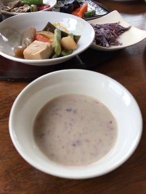 甘酒:黒米甘酒を国産豆乳にて割っております。