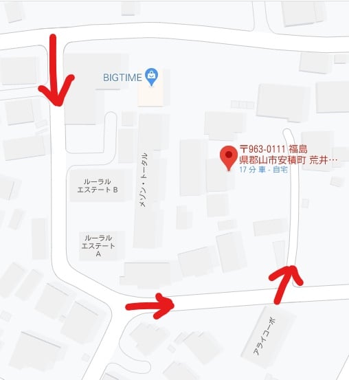 右に曲がりますと、安積第一小学校の校舎が見えますので、お間違え無いように!!
